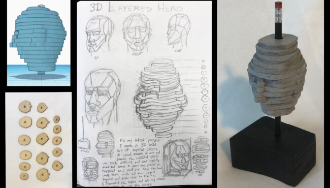 Why: I chose to create layered puzzle pieces that can be rotated around its axis to depict a head.