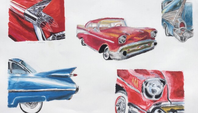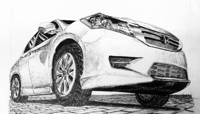 Why: After multiple sketches of details and angels of my car, I found that pen and ink with simple lines gave this drawing the depth I wanted. Through studying the elements of design I created lines, shapes, patterns, textures, and value all with one pen.